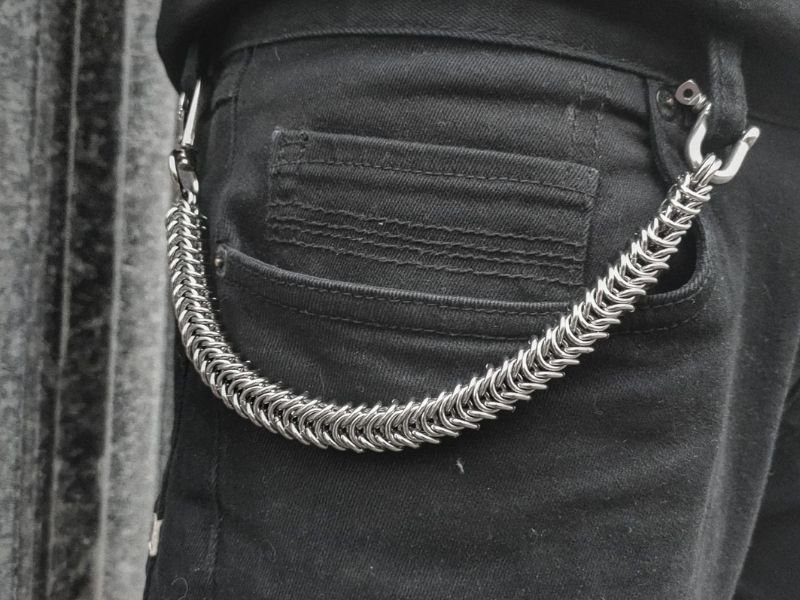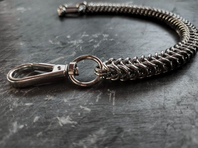 Pulsera artesanal con tejido en forma de cubo con argollas de acero inoxidable de 1.5 de grosor creando un modelo mas compacto y robusto. Cierres mosquetón y langosta, muy resistentes y duraderos.